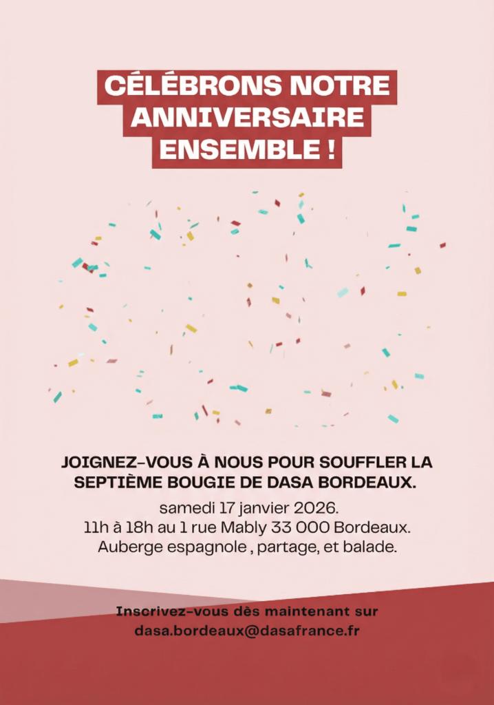 📅 Samedi 17 janvier 2026 : Le groupe de Bordeaux vous invite à célébrer son anniversaire.